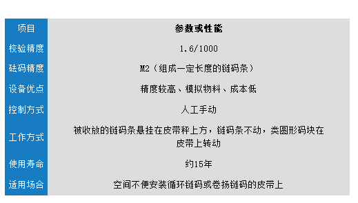 按電子皮帶秤檢定的要求,鏈碼的規(guī)格可取相應(yīng)皮帶輸送機(jī)量程點(diǎn)的20%-80%作為負(fù)荷,其計(jì)算公式如下: