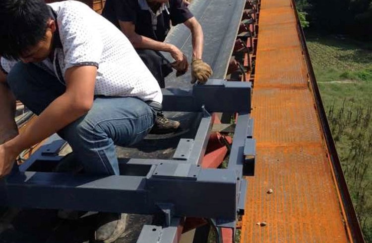(2) 支撐稱重框架的彈簧片斷裂及處理方法這種情況多數(shù)是由于彈簧片長期承荷老化,在受力過大或皮帶跑偏時扭曲斷裂,導(dǎo)致電子皮帶秤架零位和校驗后計量控制的不穩(wěn)定,發(fā)生這種情況應(yīng)及時更換新的彈簧片,更換后應(yīng)重新校正稱重框架,采用拉線法校核所有托輥縱、橫向成直線,調(diào)整后重新跑皮和校秤。